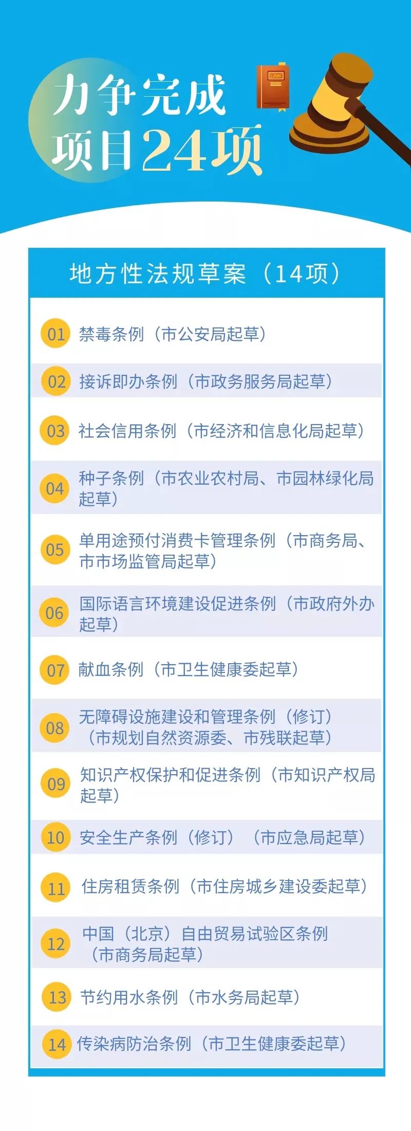 接訴即辦條例等一批綜合性、全局性、基礎(chǔ)性且對(duì)首都經(jīng)濟(jì)社會(huì)發(fā)展影響深遠(yuǎn)的重要法規(guī)草案和規(guī)章納入計(jì)劃。